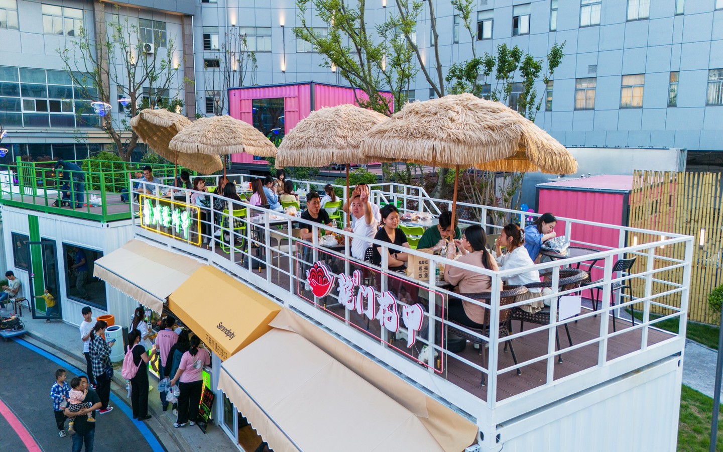 的核心銜接點(diǎn);身處長(zhǎng)三角知名產(chǎn)教城融合示范區(qū),緊鄰常州大學(xué)城、科教城。街區(qū)占地約120畝,已投資1.5億元,定位“Z世代”青年網(wǎng)紅潮集地,切中文商旅融合、夜經(jīng)濟(jì)、她經(jīng)濟(jì),通過創(chuàng)意餐飲、文創(chuàng)市集、微醺空間、日咖夜酒、潮流運(yùn)動(dòng)、藝術(shù)研學(xué)、宴會(huì)中心、網(wǎng)紅書屋、親子文娛、城市營(yíng)地等多功能社交業(yè)態(tài),立足打造長(zhǎng)三角城市微度假特色目的地與文旅新地標(biāo)。作為開放式城市公園風(fēng)格,街區(qū)分“東中西”3大區(qū)域、7塊生活版塊,聚集了創(chuàng)意餐飲、文創(chuàng)市集、潮流運(yùn)動(dòng)、藝術(shù)研學(xué)、親子文娛、城市營(yíng)地等多功能社交業(yè)態(tài)。其中,“運(yùn)動(dòng)+藝術(shù)”雙活動(dòng)廣場(chǎng)超1萬(wàn)平方米,汽車、森系街區(qū)、無(wú)界秀場(chǎng)、國(guó)際友人俱樂部、青年情緒引力場(chǎng)等創(chuàng)意主題空間將陸續(xù)上線。