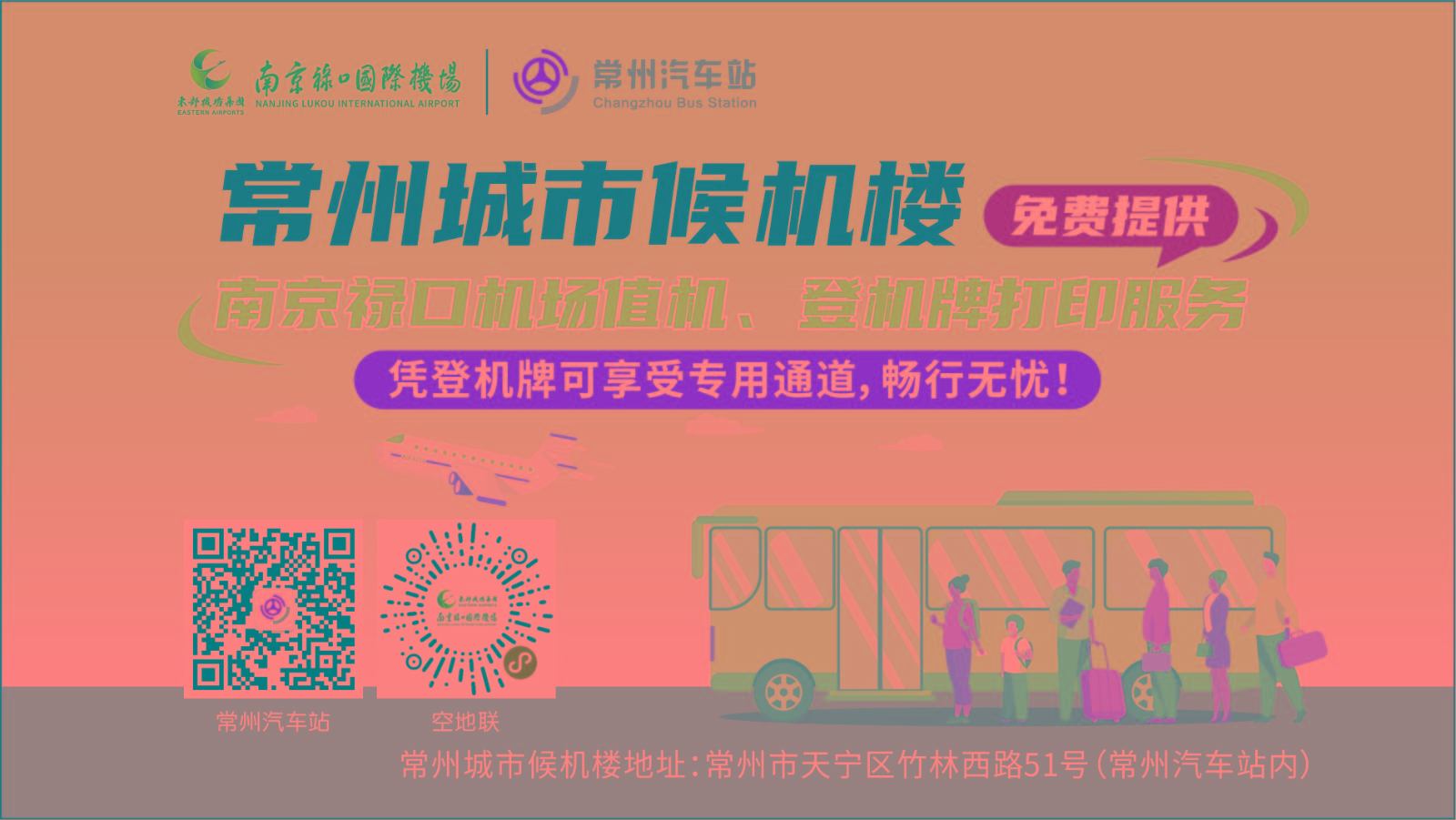 4月1日起,常州至南京祿口國際機場專線再次升級,在常州候機樓即可辦理值機、免費打印登機牌,并享受祿口機場專用通道,商務出行更高效,度假旅行更輕松。
